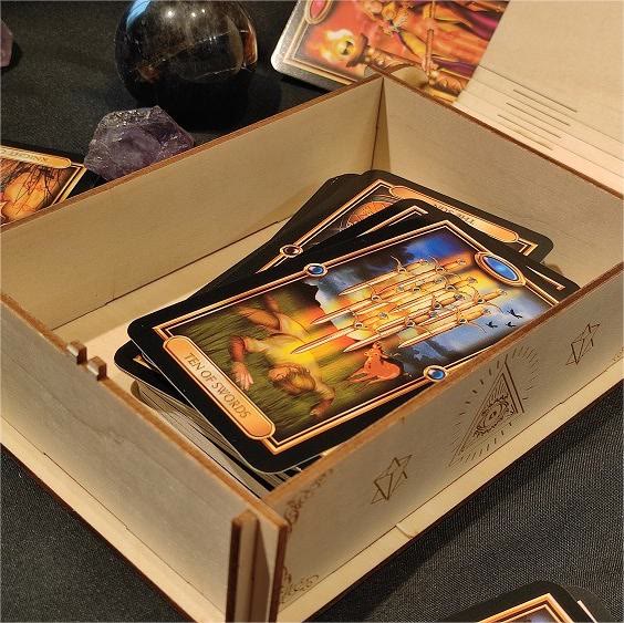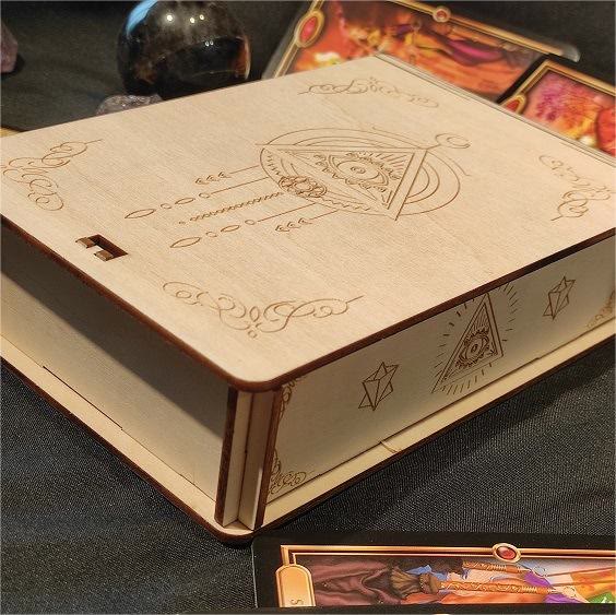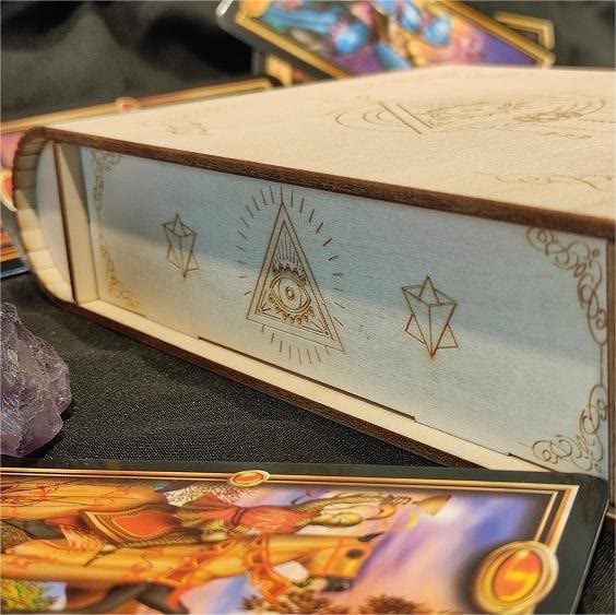 Esalta le tue carte dei tarocchi con l'ornamento in legno Olivenorma Evil Eye Tarot Box. Un'accattivante soluzione di archiviazione che aggiunge fascino alla tua pratica mistica, mantenendo le tue carte protette ed energizzate.