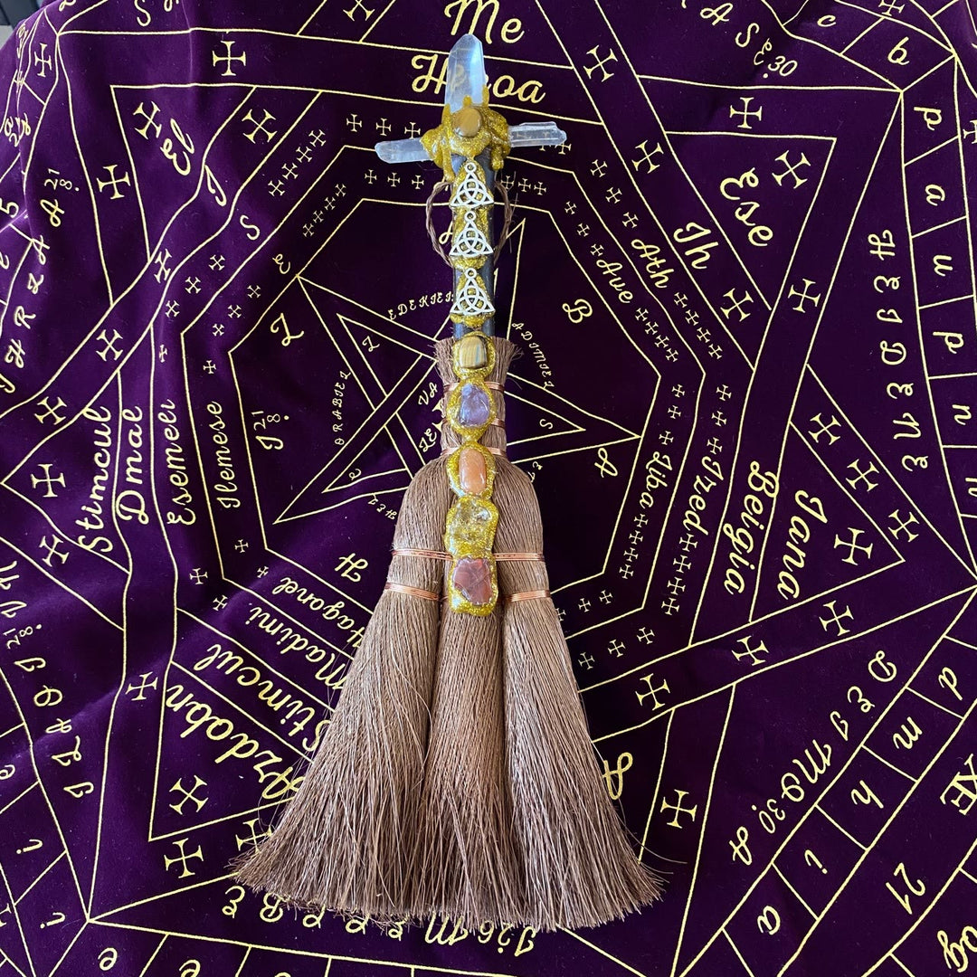 Olivenorma Cristallo naturale Magia Espulsione Props Wicca Scopa Ornamento