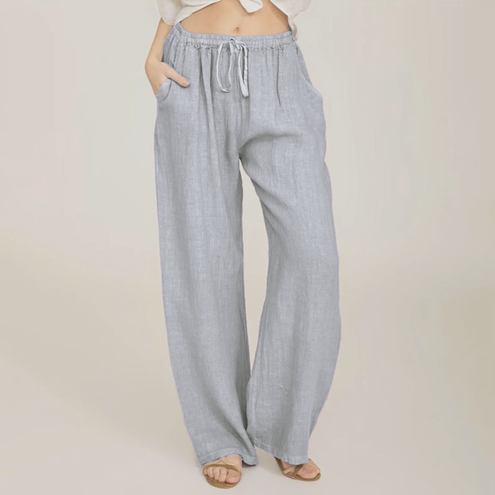 Abbraccia l'eleganza rilassata con questi pantaloni a gamba larga in cotone e lino da donna 🌿. Realizzati in un traspirante misto cotone e lino, offrono una sensazione di leggerezza e ariosità, perfetti per le giornate calde o rilassanti. Il taglio a gamba larga aggiunge fluidità e movimento, mentre la coulisse regolabile in vita garantisce una vestibilità comoda e valorizzante. ☀️👖