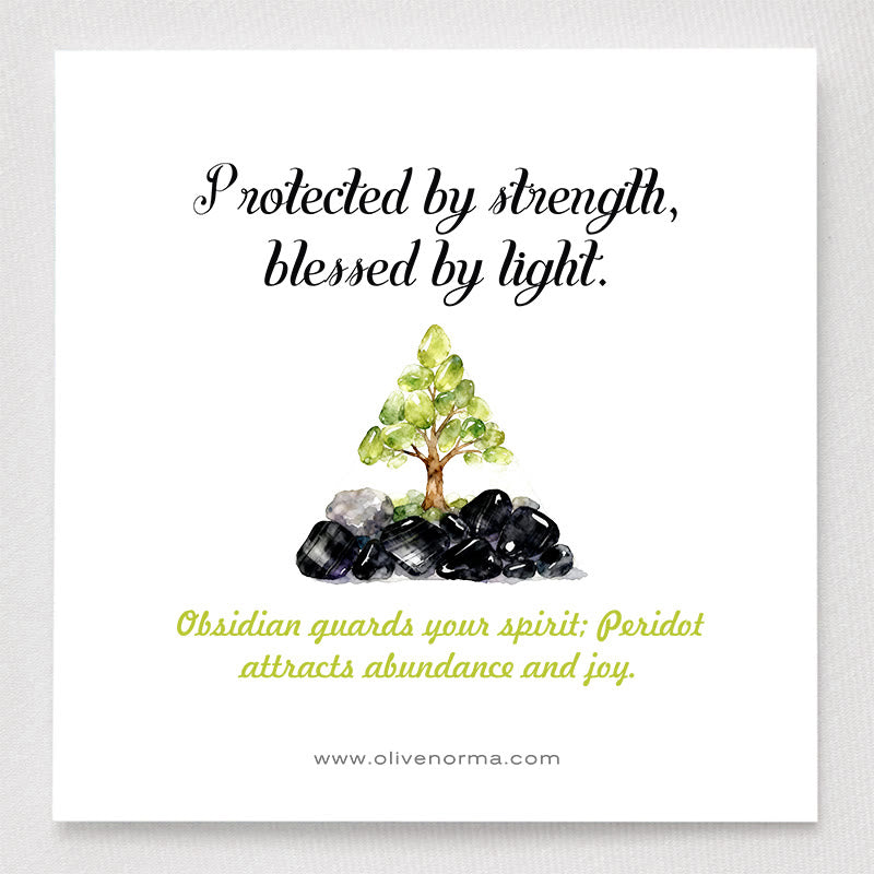 L'ossidiana protegge lo spirito, mentre il peridoto attrae abbondanza e gioia.