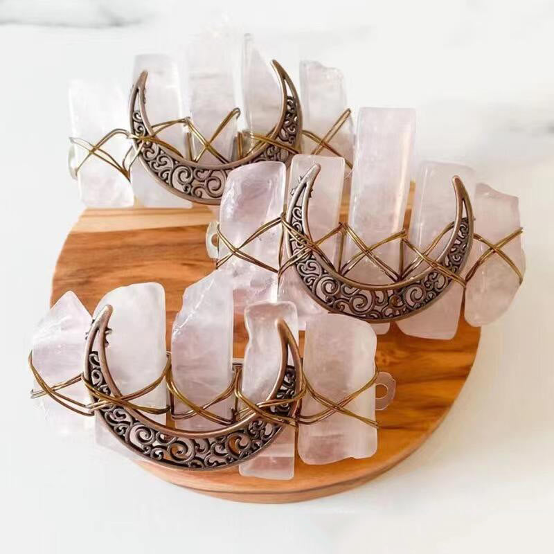 Olivenorma Fermaglio per capelli a forma di mezzaluna in quarzo rosa fatto a mano