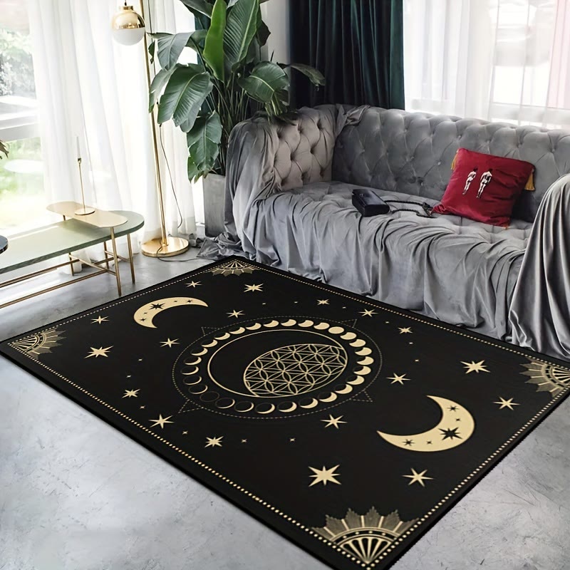Caratterizzato da motivi di sole e luna, questo tappeto simboleggia un equilibrio di forza e calma, infondendo negli spazi un senso di equilibrio. Il suo materiale durevole assicura longevità, rendendolo una scelta ideale per chiunque cerchi di radicare la propria casa nella serenità e nel potere cosmici.