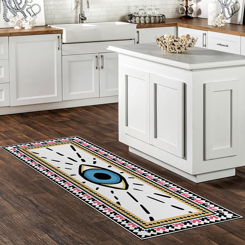 Il tappeto bianco con il malocchio è una perfetta fusione di stile e purificazione spirituale. Questo tappeto, che presenta il potente simbolo del malocchio, non solo valorizza esteticamente il tuo spazio, ma funge anche da scudo contro la sfortuna, favorendo la buona sorte e l'energia positiva nella tua casa con il suo elegante design bianco e il materiale resistente.