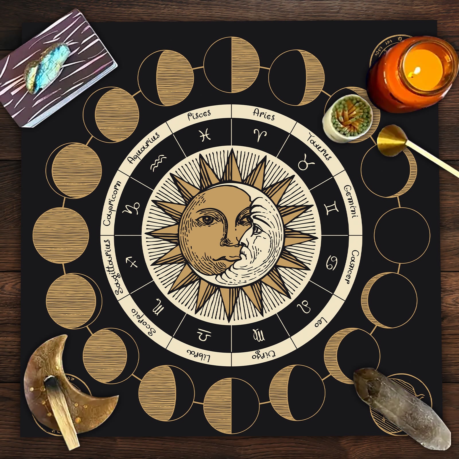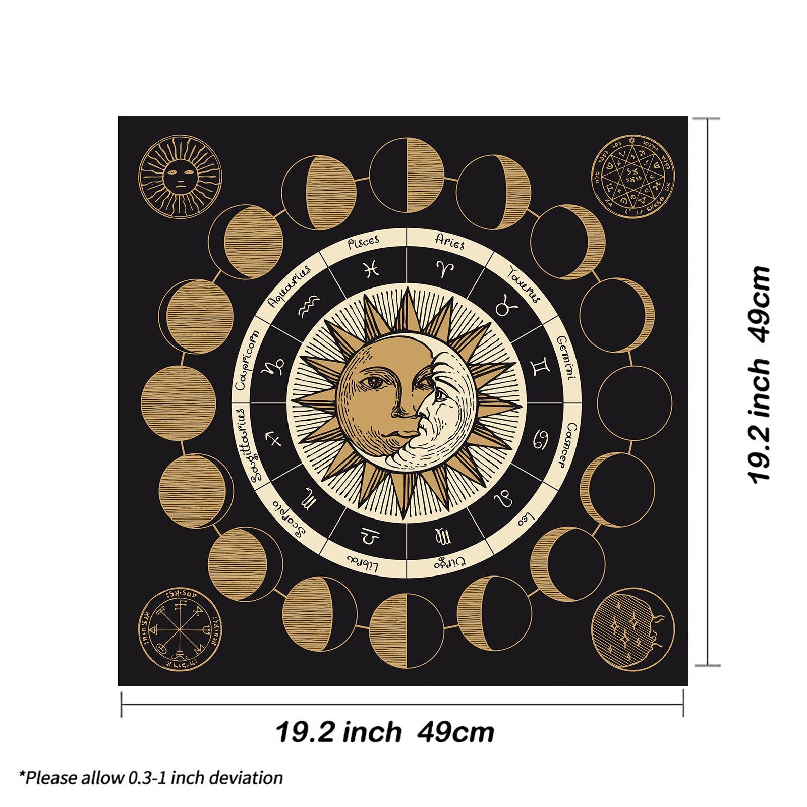 La tovaglia Astrology Wheel Moon Phase è progettata per migliorare le tue letture dei tarocchi. Realizzata in tessuto resistente e di alta qualità, presenta una ruota astrologica e fasi lunari, che simboleggiano ciclo e saggezza cosmica. Questa tovaglia sacra fornisce uno sfondo sereno per le tue pratiche di divinazione, aiutandoti a connetterti con le energie astrologiche e ad approfondire le tue intuizioni spirituali, arricchendo la tua esperienza complessiva dei tarocchi.