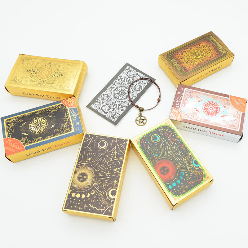 Il delicato set di carte dei tarocchi in lamina d'oro offre un lussuoso accesso al mondo mistico della lettura dei tarocchi. Realizzata con precisione, ogni carta risplende con la lamina d'oro, esaltando la profondità e la vivacità delle immagini. Perfette per chi cerca di approfondire la propria pratica spirituale, queste carte promettono uno strumento visivamente sbalorditivo ed energeticamente potente per la divinazione, la riflessione e la crescita personale.