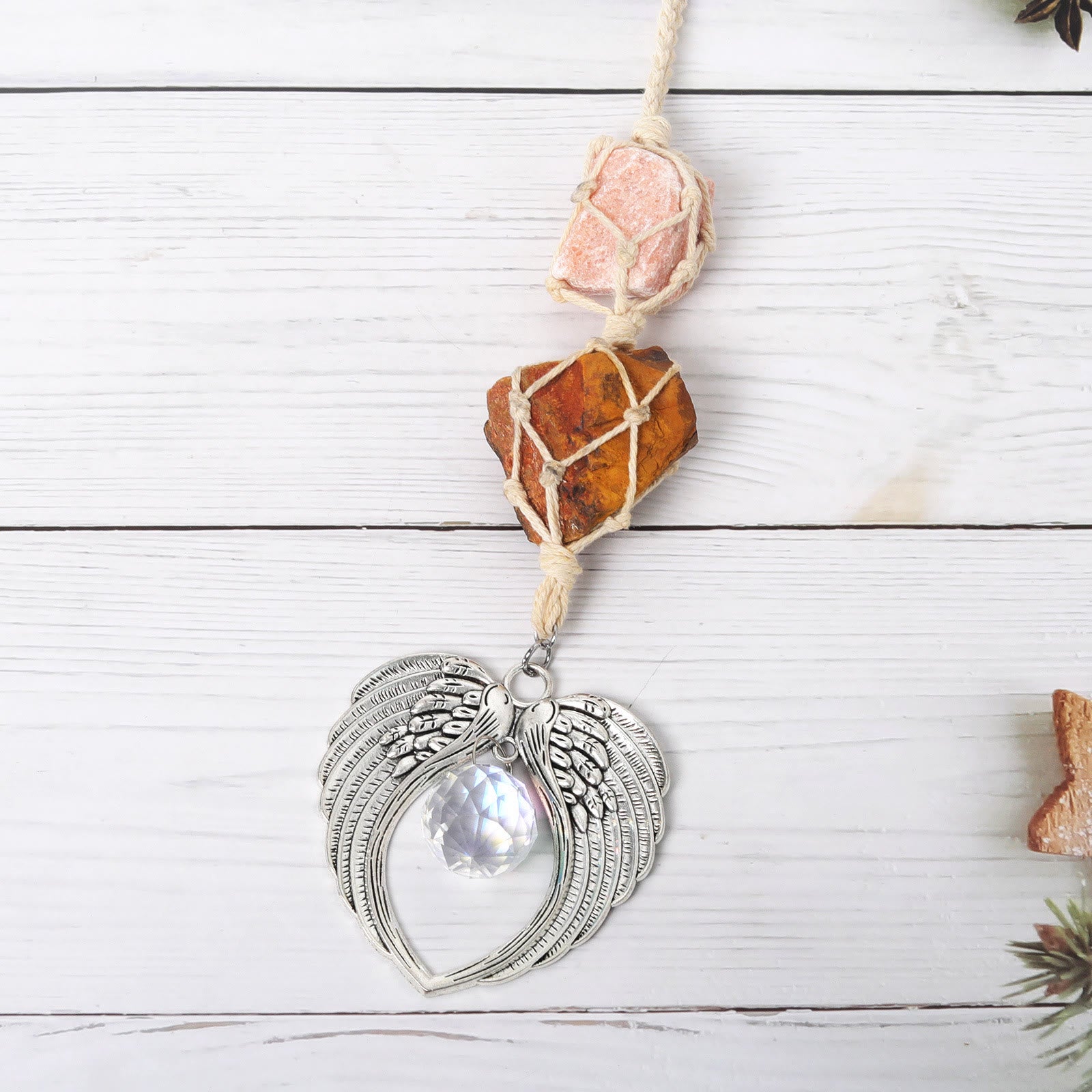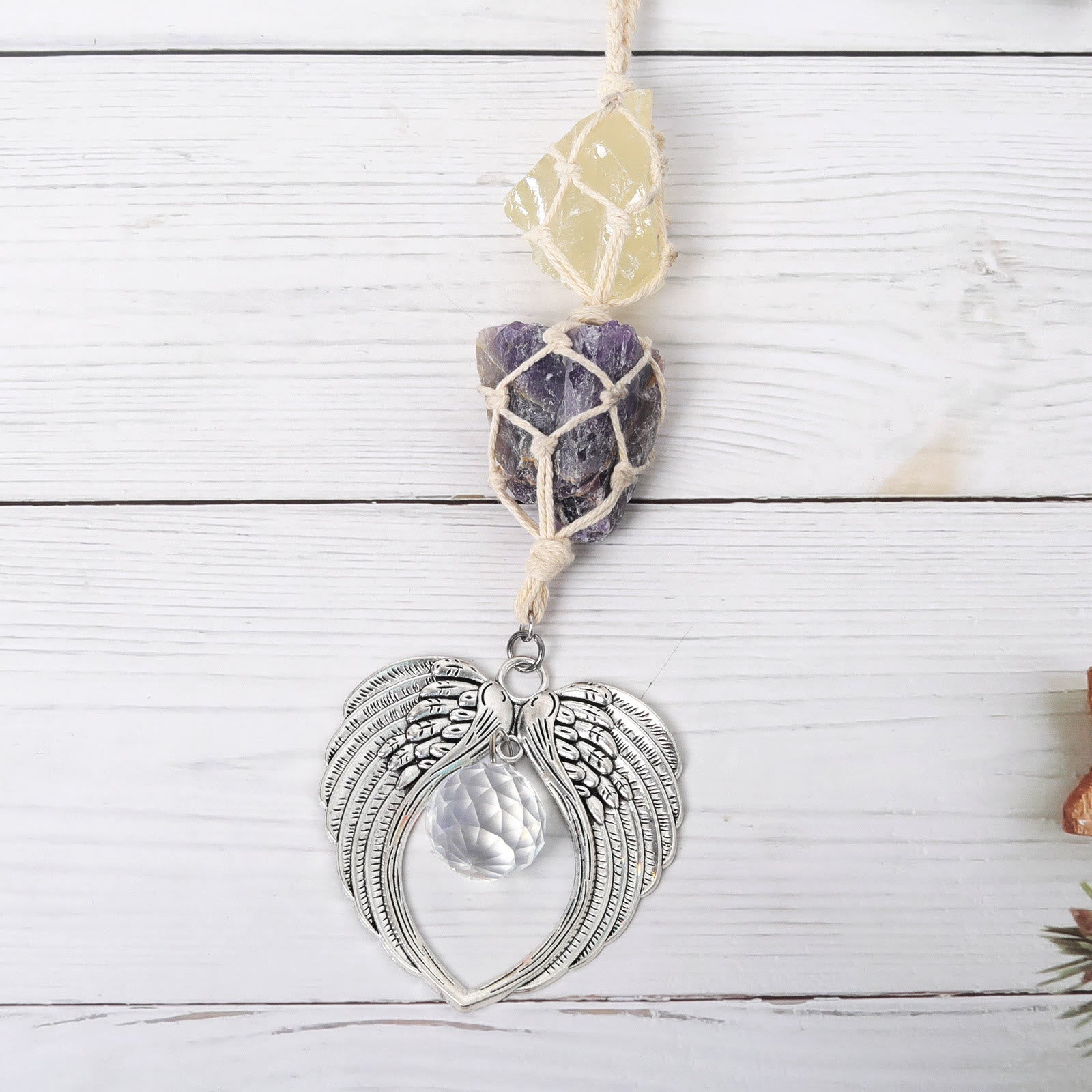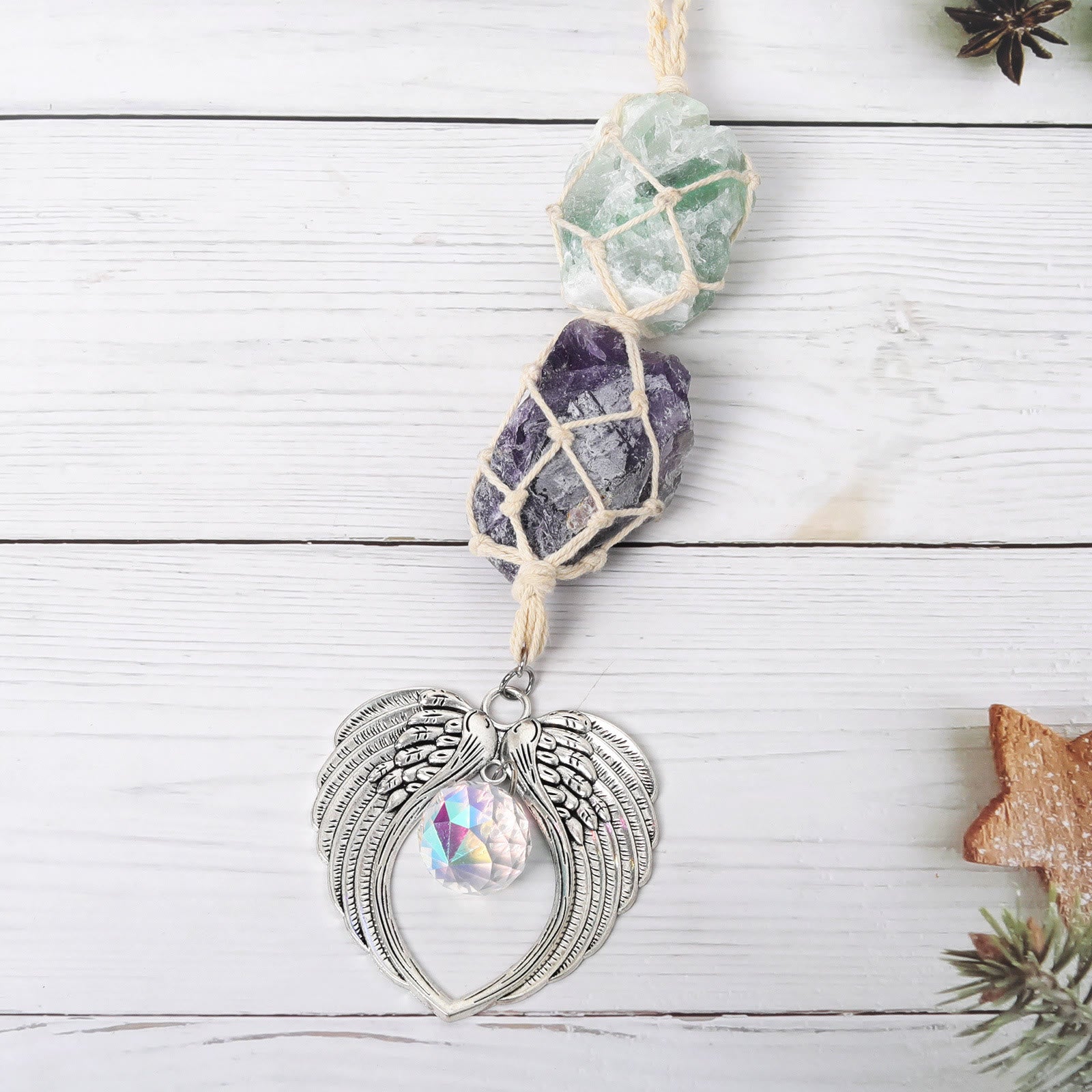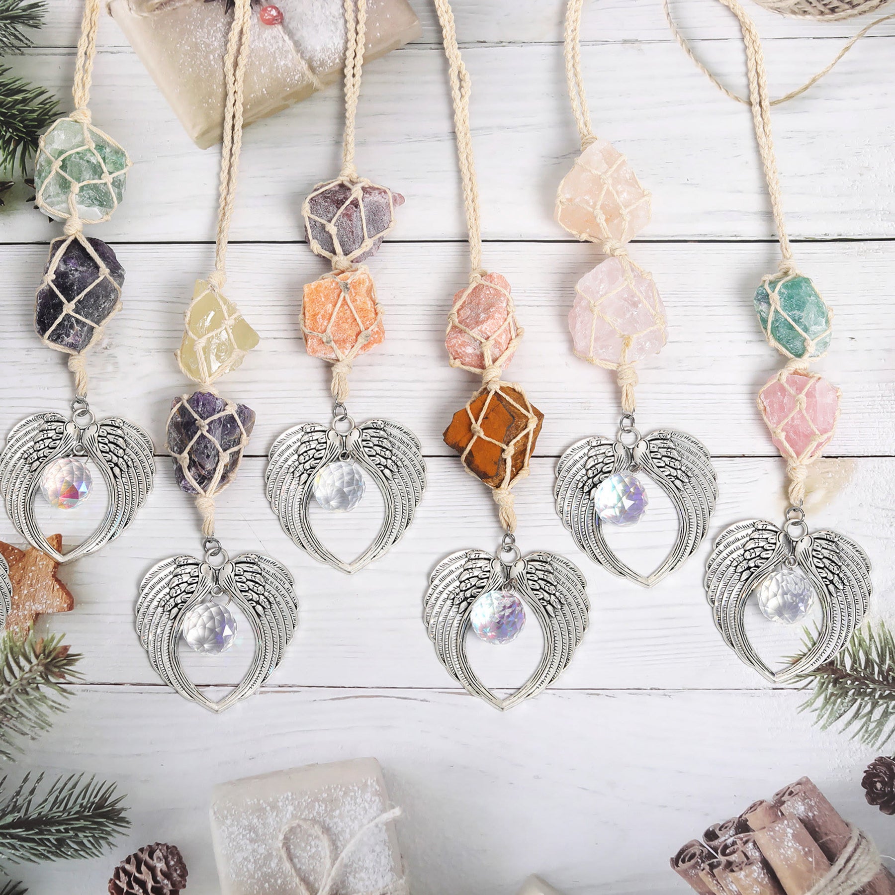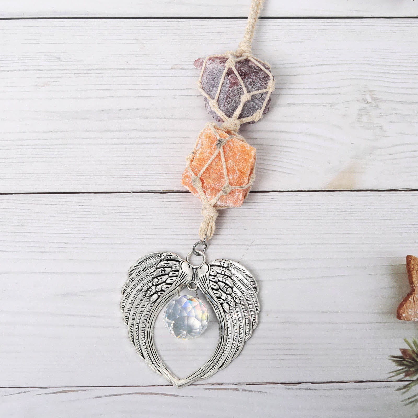 Abbraccia l'energia radiosa dell'ornamento per finestra Olivenorma Metal Angel Wing SunCatcher. Realizzato con veri cristalli naturali, questo squisito ornamento purifica, bilancia e riallinea il tuo spazio. Sperimenta le frequenze vibrazionali uniche che vanno oltre l'estetica, elevando il tuo ambiente. Migliora il tuo benessere con i benefici della decorazione in cristallo: schermatura e trasformazione dell'energia negativa, connessione con la natura e riduzione dello stress ambientale. Esponilo con orgoglio e lascia che la magia dei cristalli brilli.