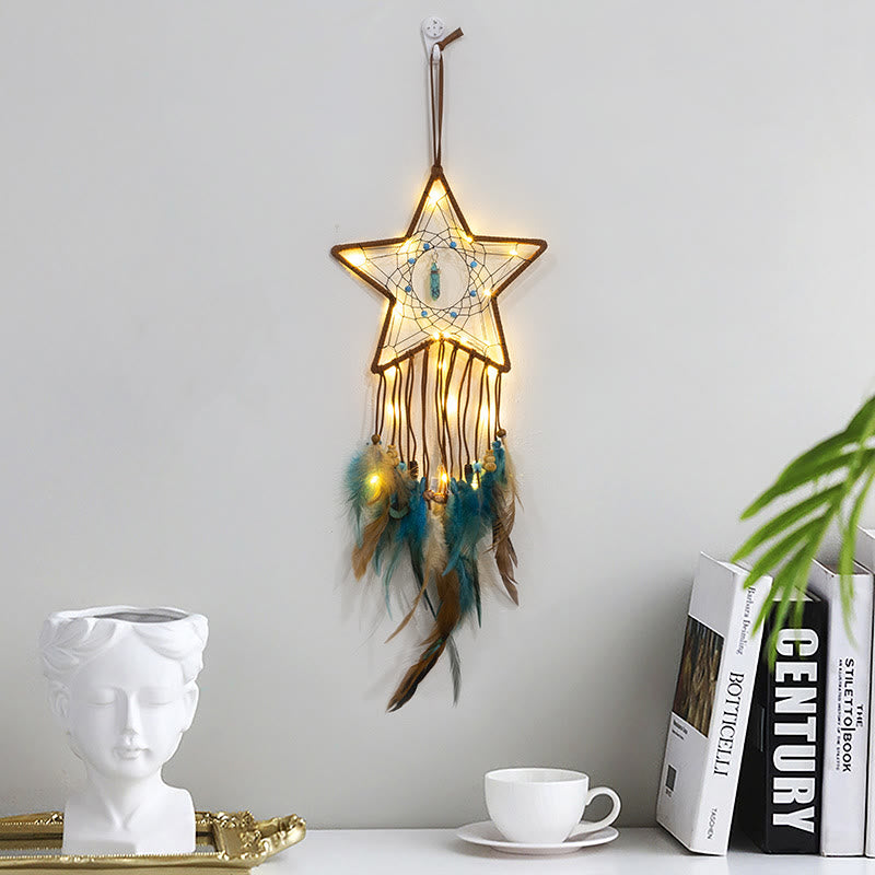 Olivenorma Ciondolo Turchese Piuma Blu Marrone Acchiappasogni