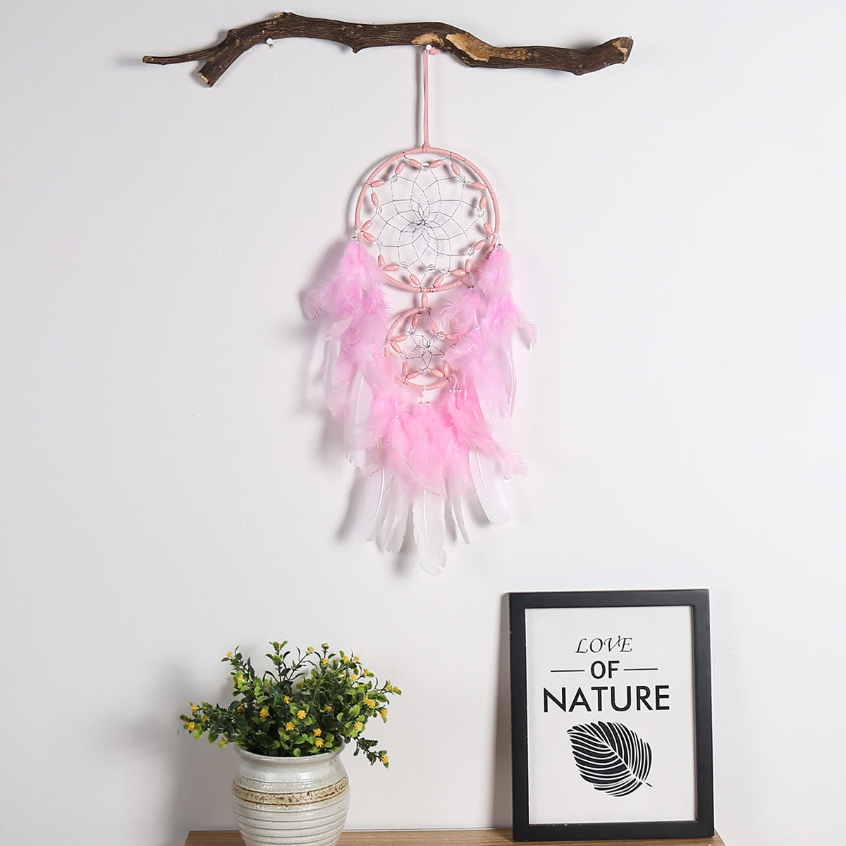Esalta il tuo spazio con l'acchiappasogni Olivenorma Perline di legno acrilico rosa Piuma. Questo acchiappasogni artigianale vanta delicate perline rosa in acrilico e legno, adornate con graziose piume. Appendilo per catturare i sogni, filtrare la negatività e aggiungere un tocco di morbida eleganza ai tuoi dintorni.