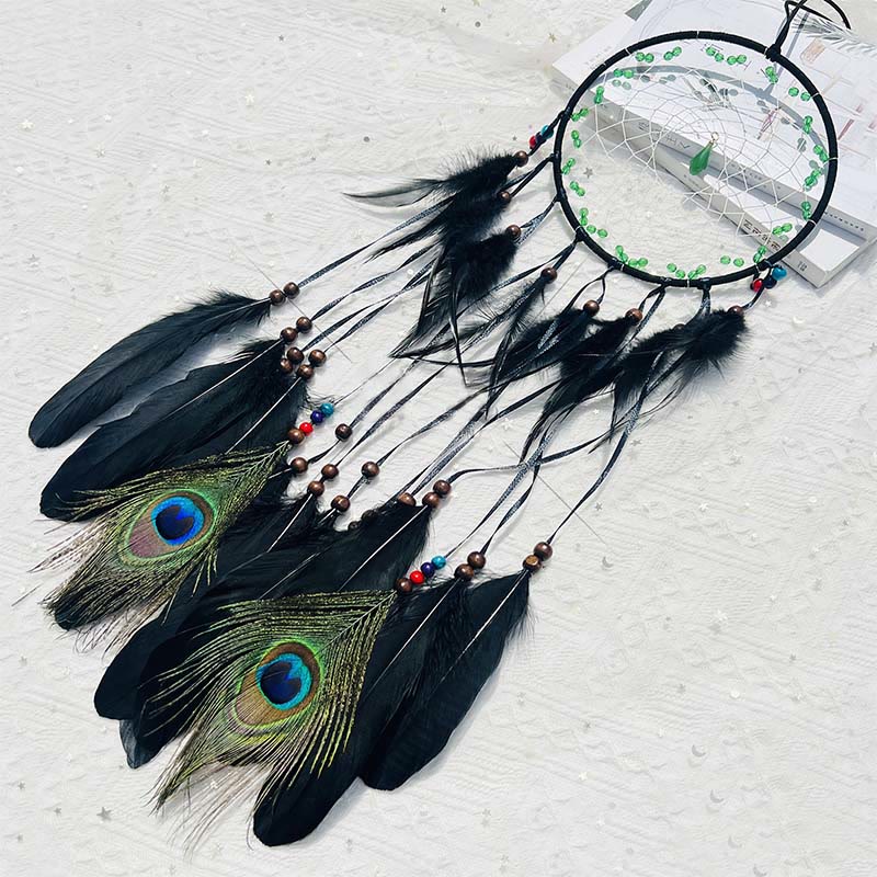 Vivi l'incanto e l'energia positiva con l'Acchiappasogni con piume di pavone avventurina verde naturale Olivenorma. Realizzato a mano con vero cristallo naturale, porta bellezza e vibrazioni curative nel tuo spazio, connettendoti con il potere della natura.