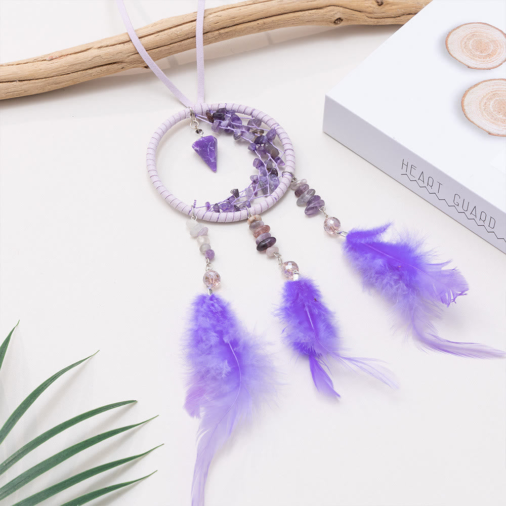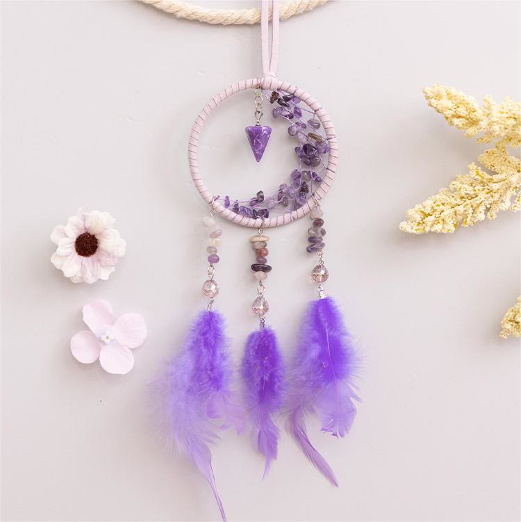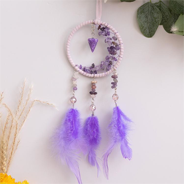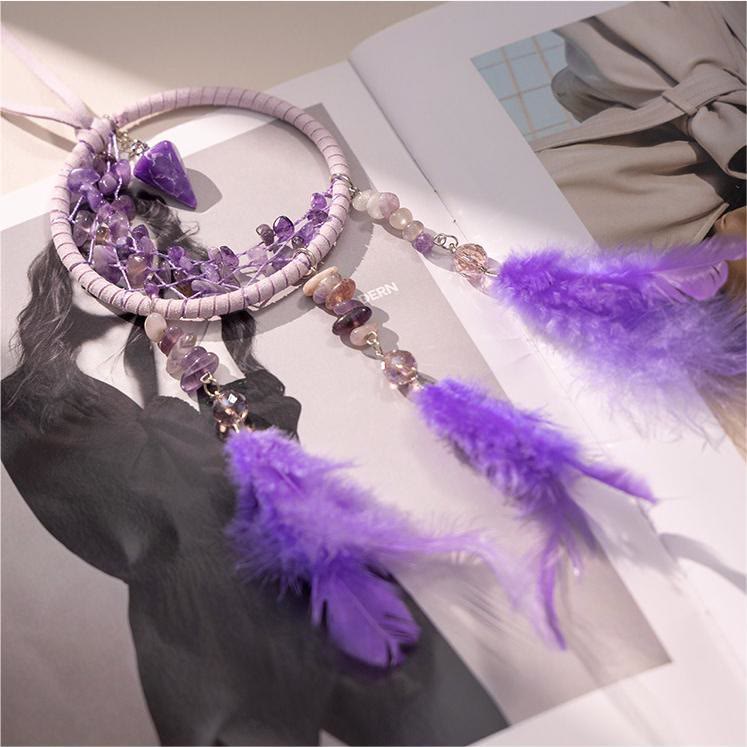 - Nome: Ciondolo in ametista Olivenorma, piccolo acchiappasogni a mezzaluna con piuma
