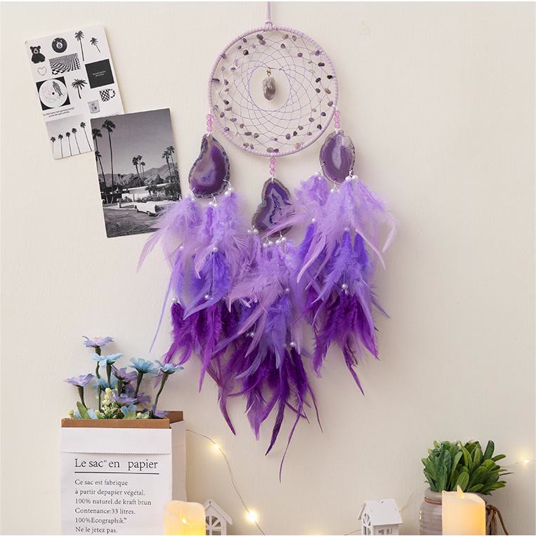 Scopri la tranquillità Olivenorma Acchiappasogni con fiori intrecciati in agata viola e ametista. Realizzato con autentica ametista e agata, infonde nel tuo spazio calma e vibrazioni positive, allontanando i brutti sogni.