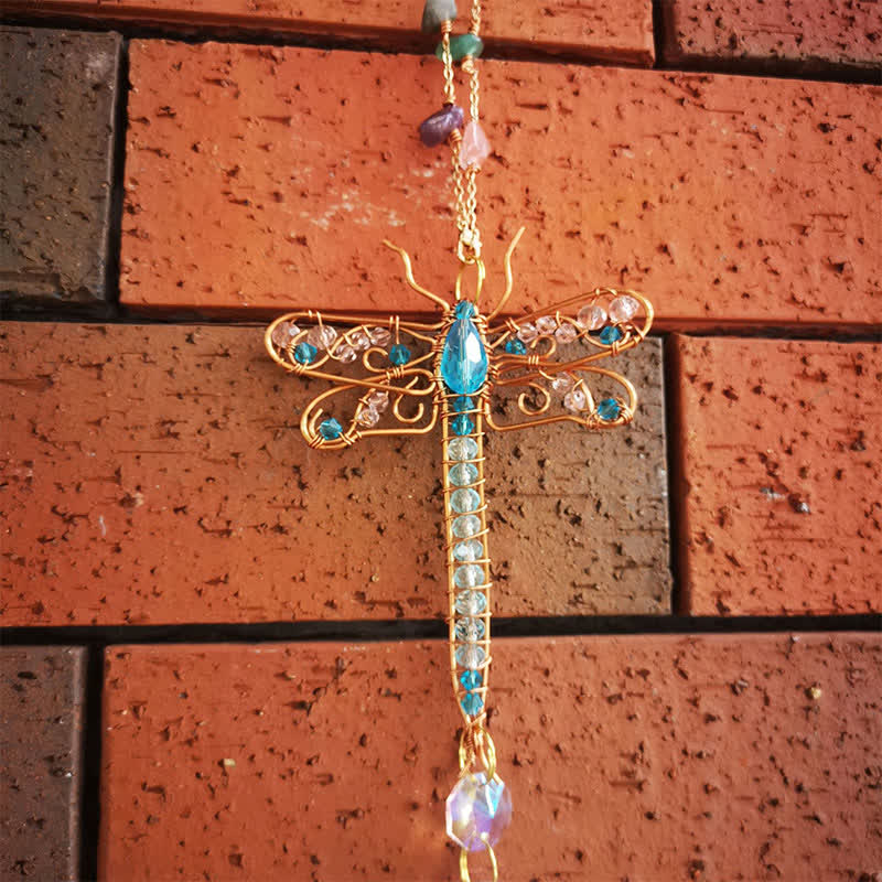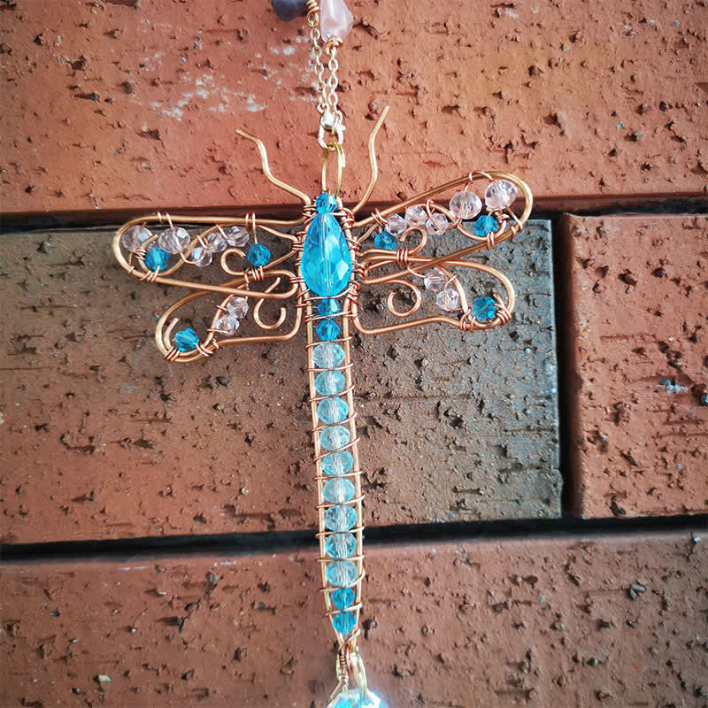 - Nome: Olivenorma Campanello a vento con libellula in filo di rame e cristallo naturale