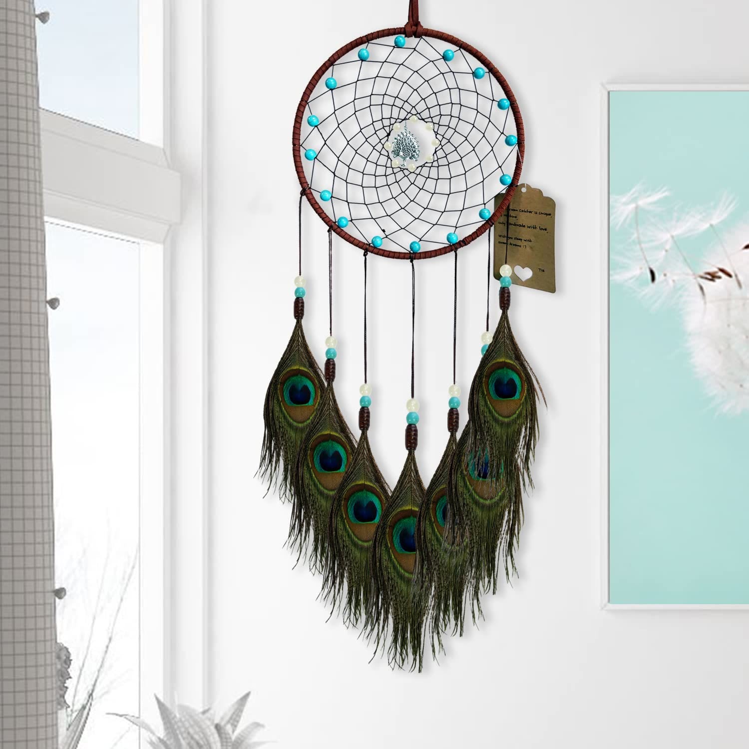Lasciati conquistare dall'incanto e dall'energia positiva portati Olivenorma Glow Beads Acchiappasogni fatto a mano con piume di pavone. Realizzato artigianalmente con cura con autentici cristalli naturali, aggiunge un tocco di magia e favorisce una profonda connessione con la natura per valorizzare il tuo spazio.