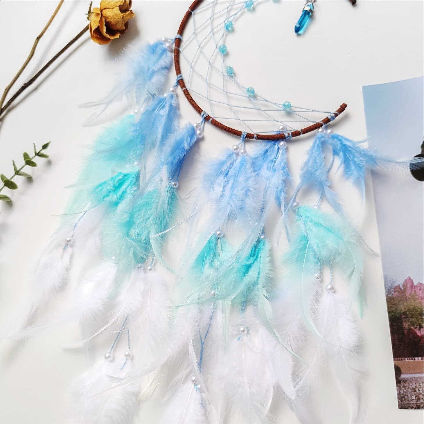 Scopri l'incantevole bellezza Ciondolo Olivenorma Luna Con Topazio Azzurro Acchiappasogni. Realizzato a mano con veri cristalli naturali, unisce l'energia rilassante della luna e le proprietà curative del topazio blu per un'atmosfera calmante e serena.