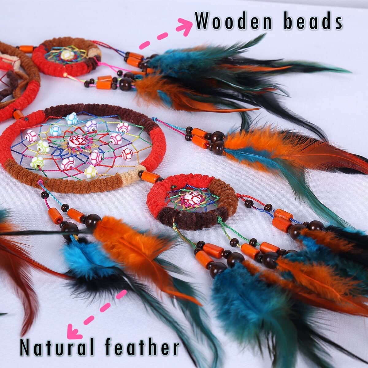 Olivenorma Perline di legno fatte a mano Acchiappasogni con piume