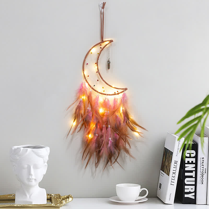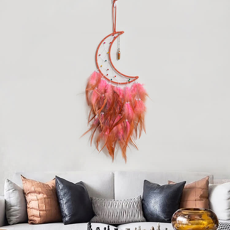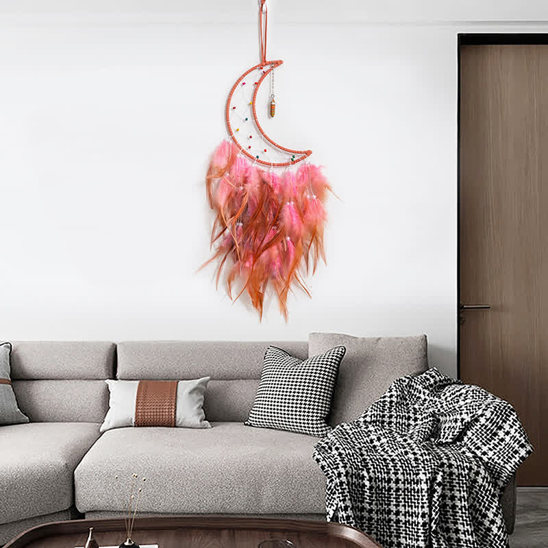 L'acchiappasogni Colourful Rice Beads è progettato con una forma di luna crescente, ornata con piume arancioni e rosa vivaci e perline di riso colorate. La luna crescente rappresenta intuizione e rinnovamento, mentre le piume luminose evocano creatività e positività. L'intricata lavorazione artigianale un'atmosfera tranquilla, promuovendo l'equilibrio emotivo e sogni pacifici. Ideale per la meditazione o per creare uno spazio armonioso.