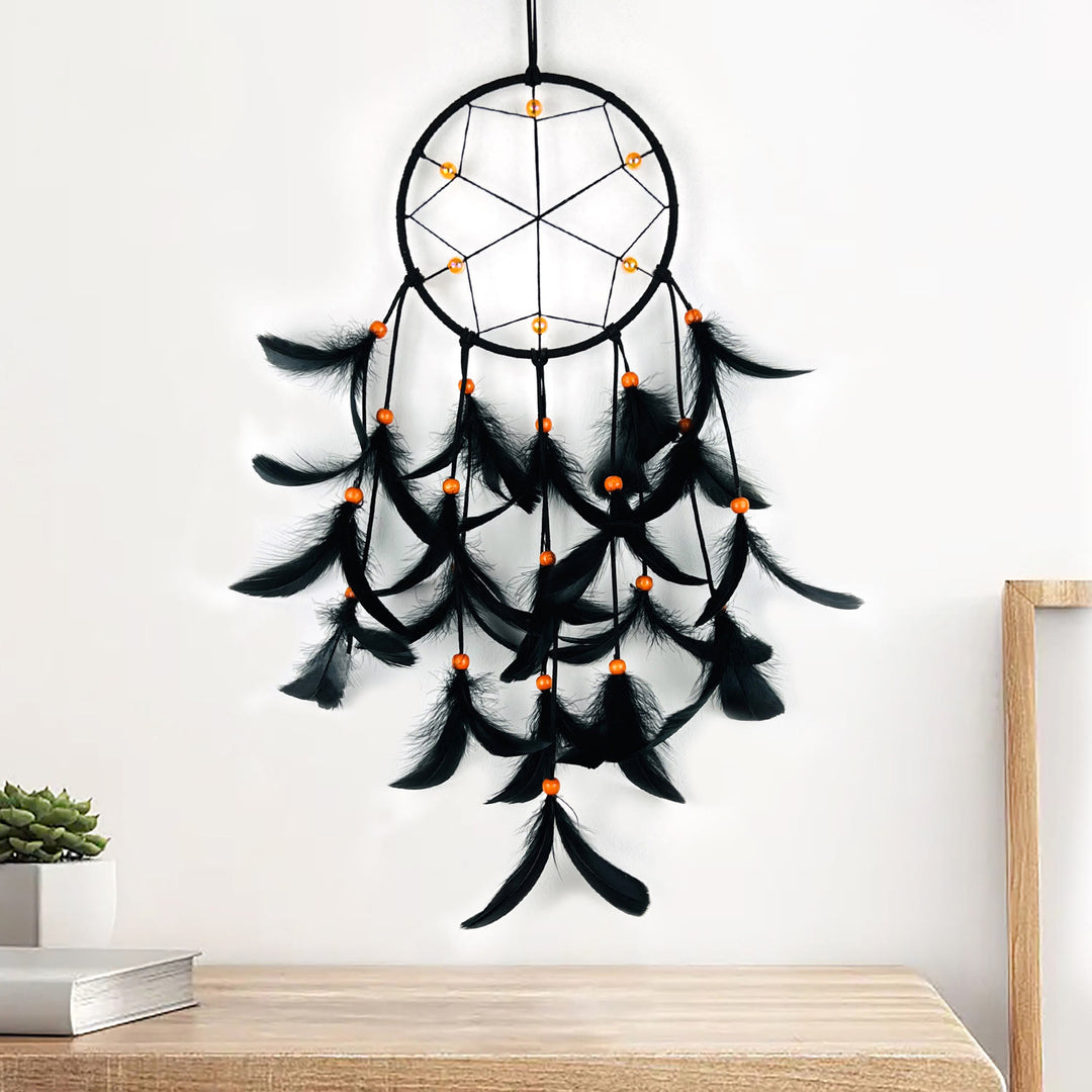Olivenorma Piuma Nera Perline Arancioni Acchiappasogni di Halloween