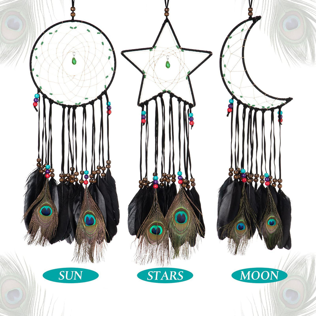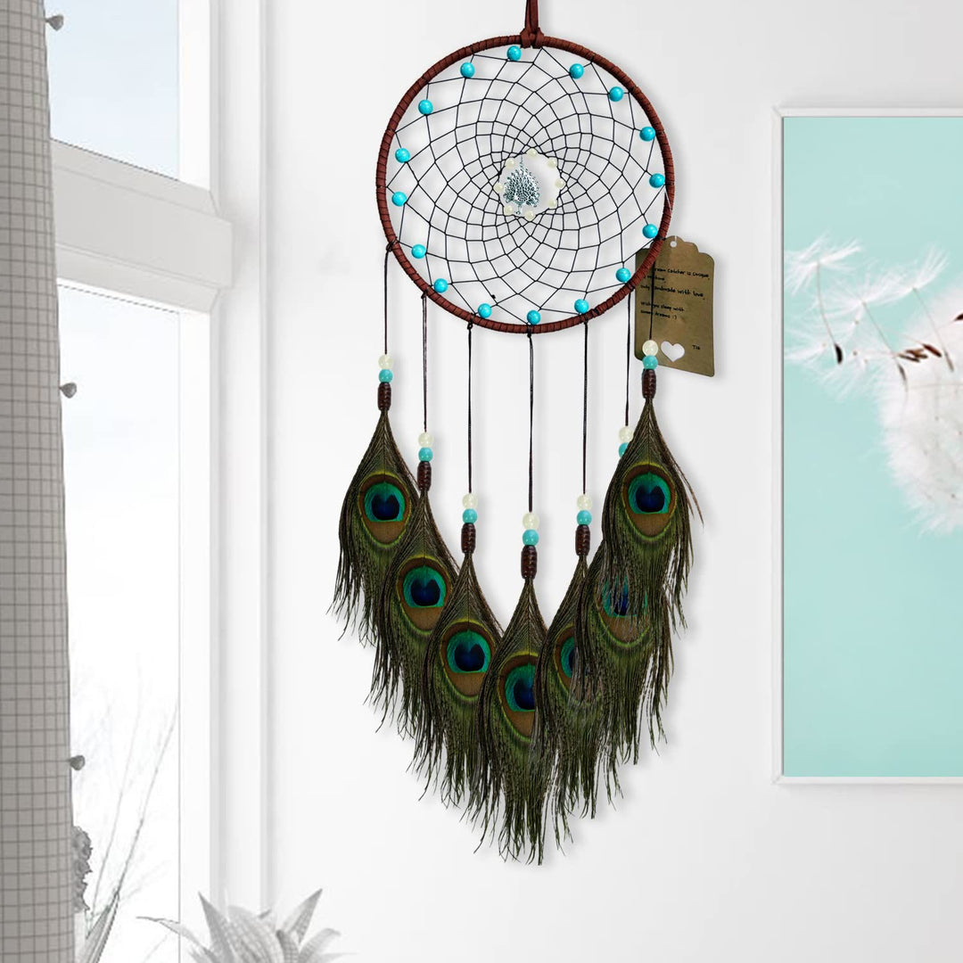 Olivenorma Glow Beads Acchiappasogni fatto a mano con piume di pavone
