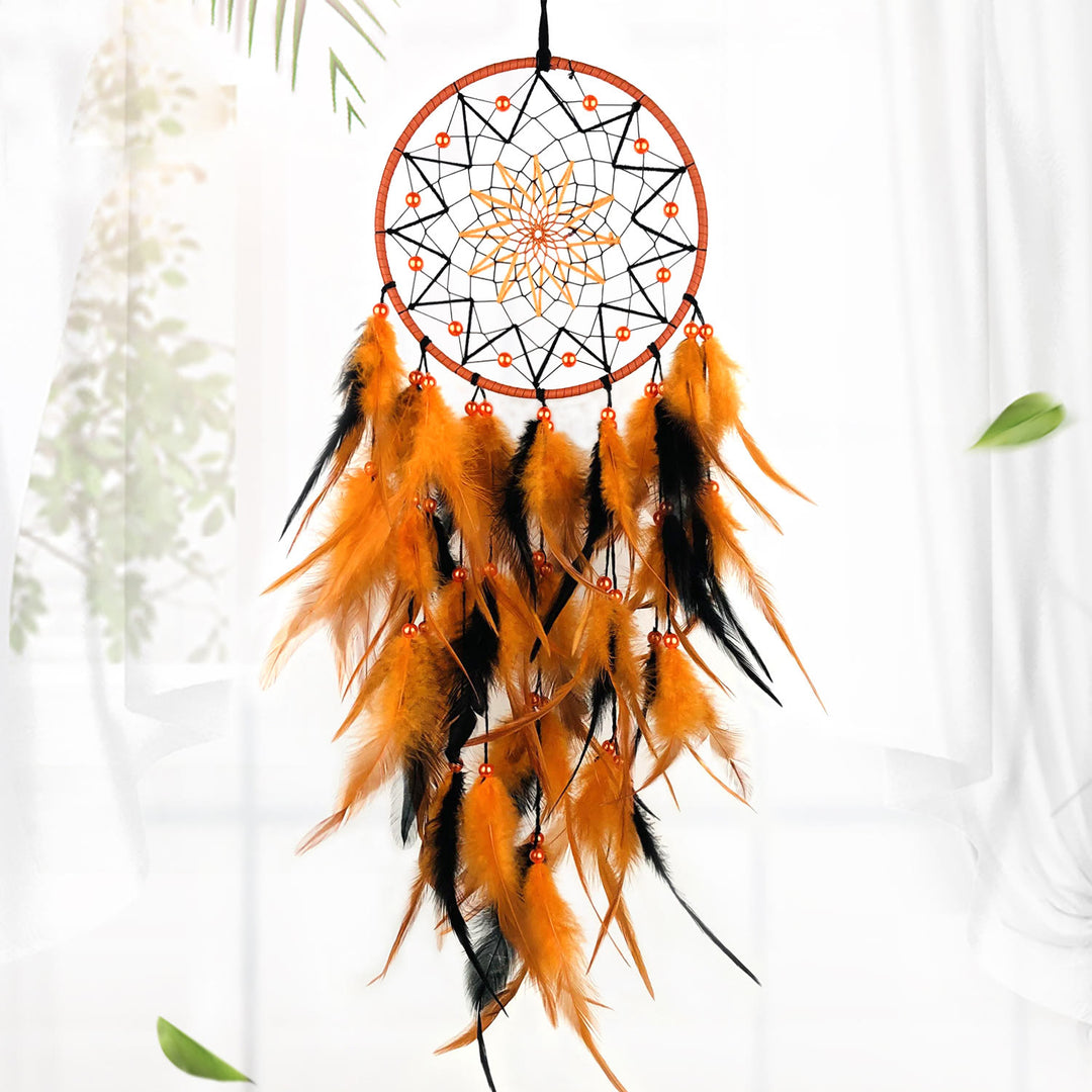 Olivenorma Perline acriliche Piuma arancione Acchiappasogni fatto a mano per Halloween