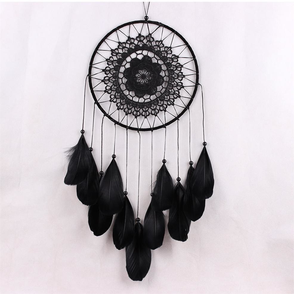 Olivenorma Ciondolo in ice nero Acchiappasogni con piuma nera