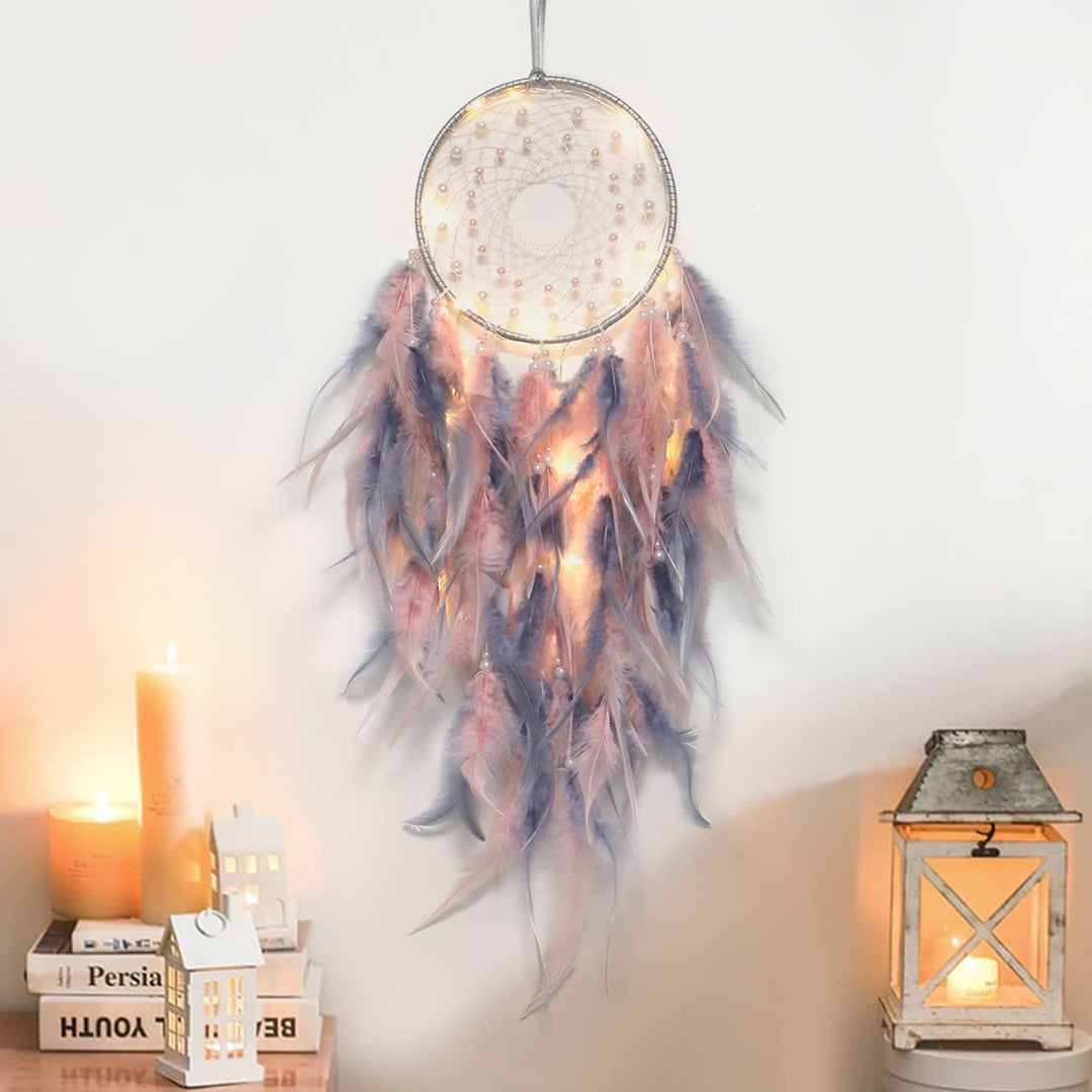 Olivenorma LED Light Up Acchiappasogni fatto a mano con piume