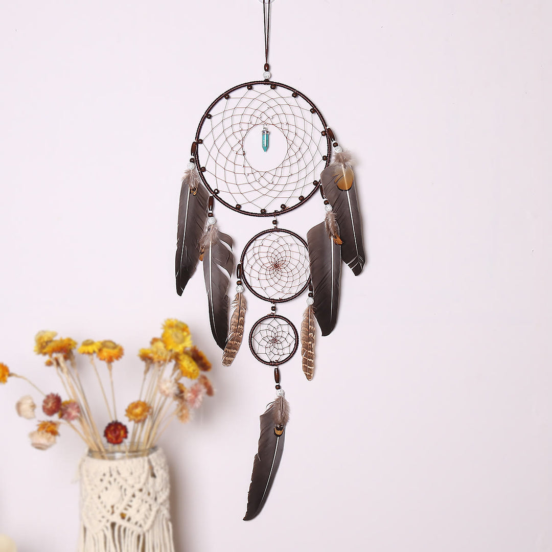 Olivenorma Perline di legno fatte a mano Acchiappasogni con piume