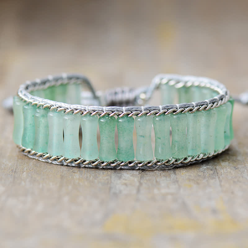 Il braccialetto Bamboo Shape Crystal è meticolosamente progettato con cristalli a forma di bambù disposti verticalmente, che simboleggiano forza e resilienza. Disponibile in tre splendide varianti: avventurina verde, cristallo trasparente e ossidiana, ogni materiale offre proprietà uniche. L'avventurina verde favorisce la crescita e la prosperità, mentre il cristallo trasparente promuove chiarezza ed equilibrio. L'ossidiana fornisce energia protettiva, rendendo questo braccialetto un'aggiunta significativa alla collezione di chiunque sia concentrato sulla crescita personale.