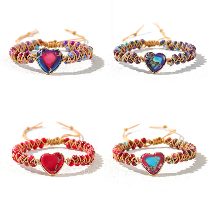 Bracciale intrecciato in quarzo naturale curativo con pietra dell'imperatore a forma di cuore Olivenorma - Pietra dell'imperatore rossa e blu #intrecciata - image 33