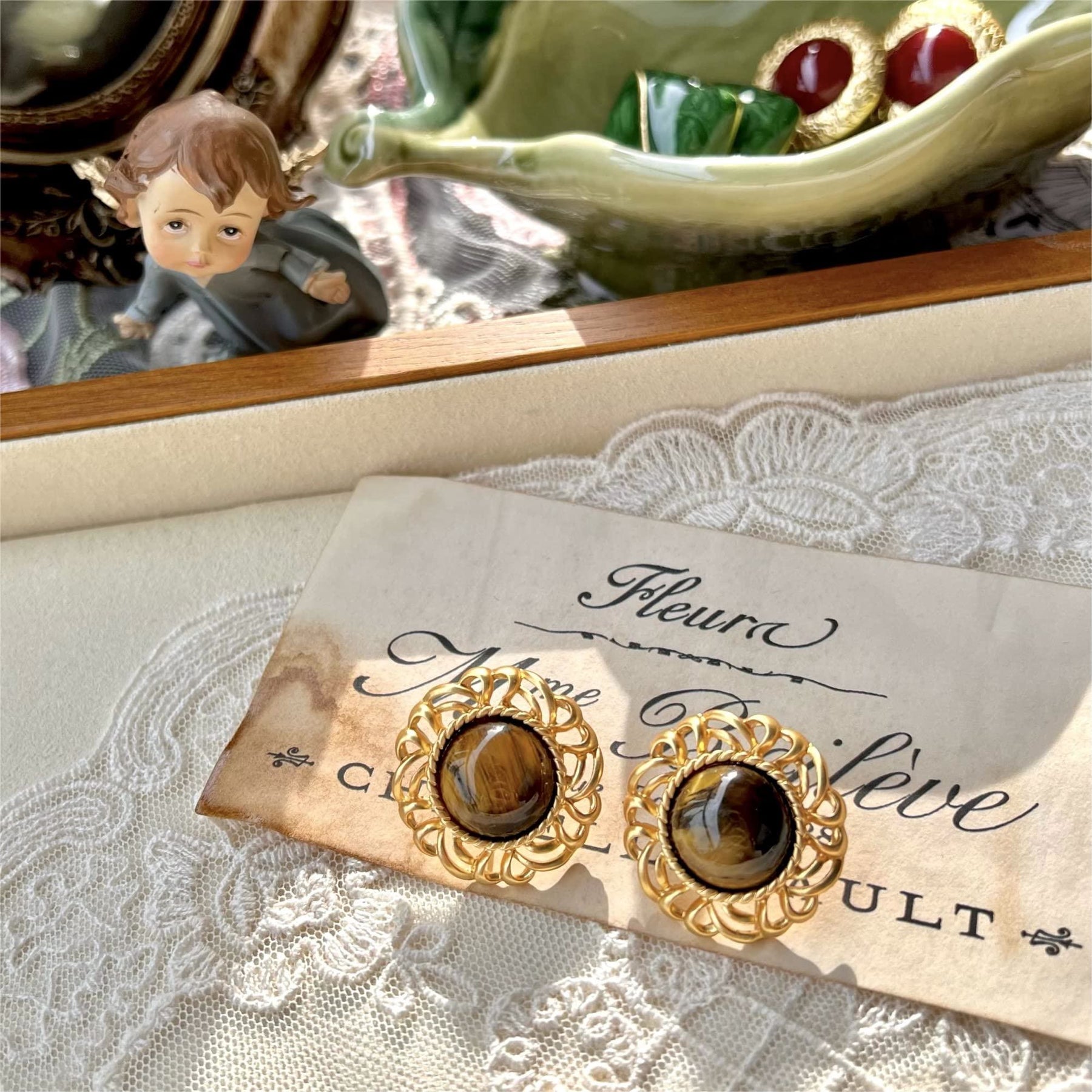 • Nome: orecchini in oro con occhio di tigre e girasole Olivenorma