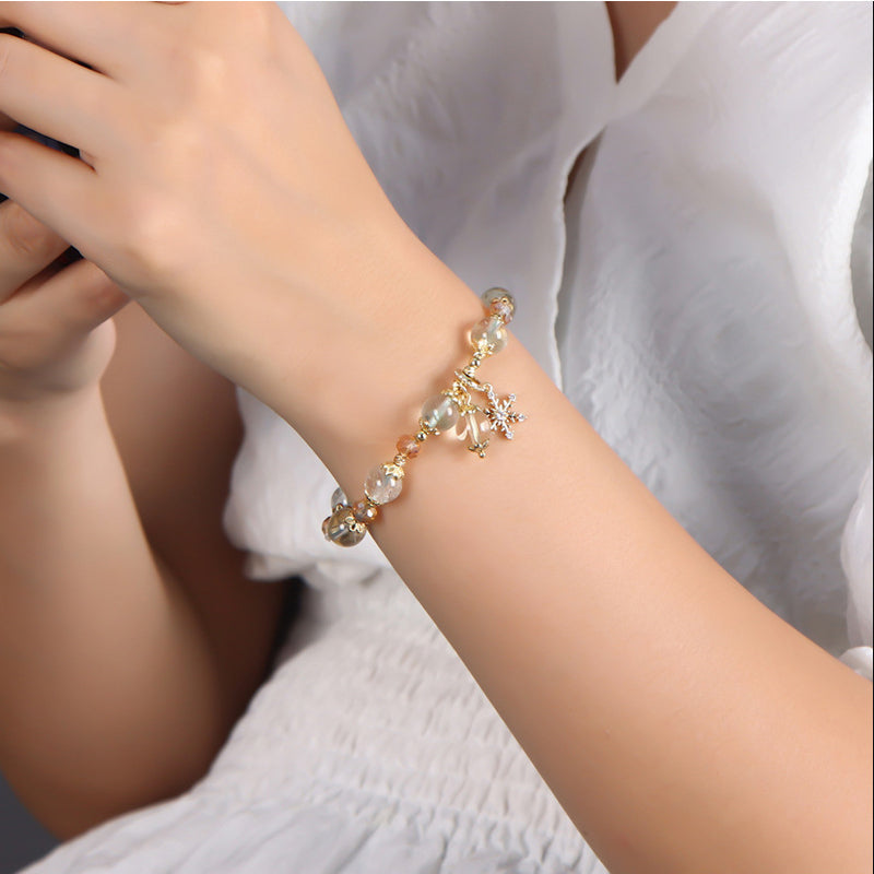 - Nome: Bracciale con ciondolo a fiocco di neve in quarzo fantasma verde Olivenorma e zirconi