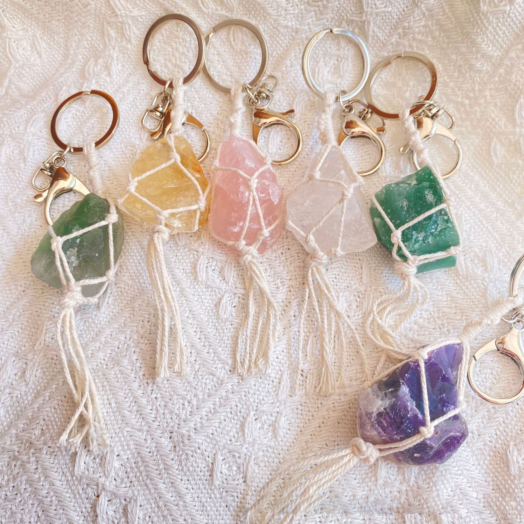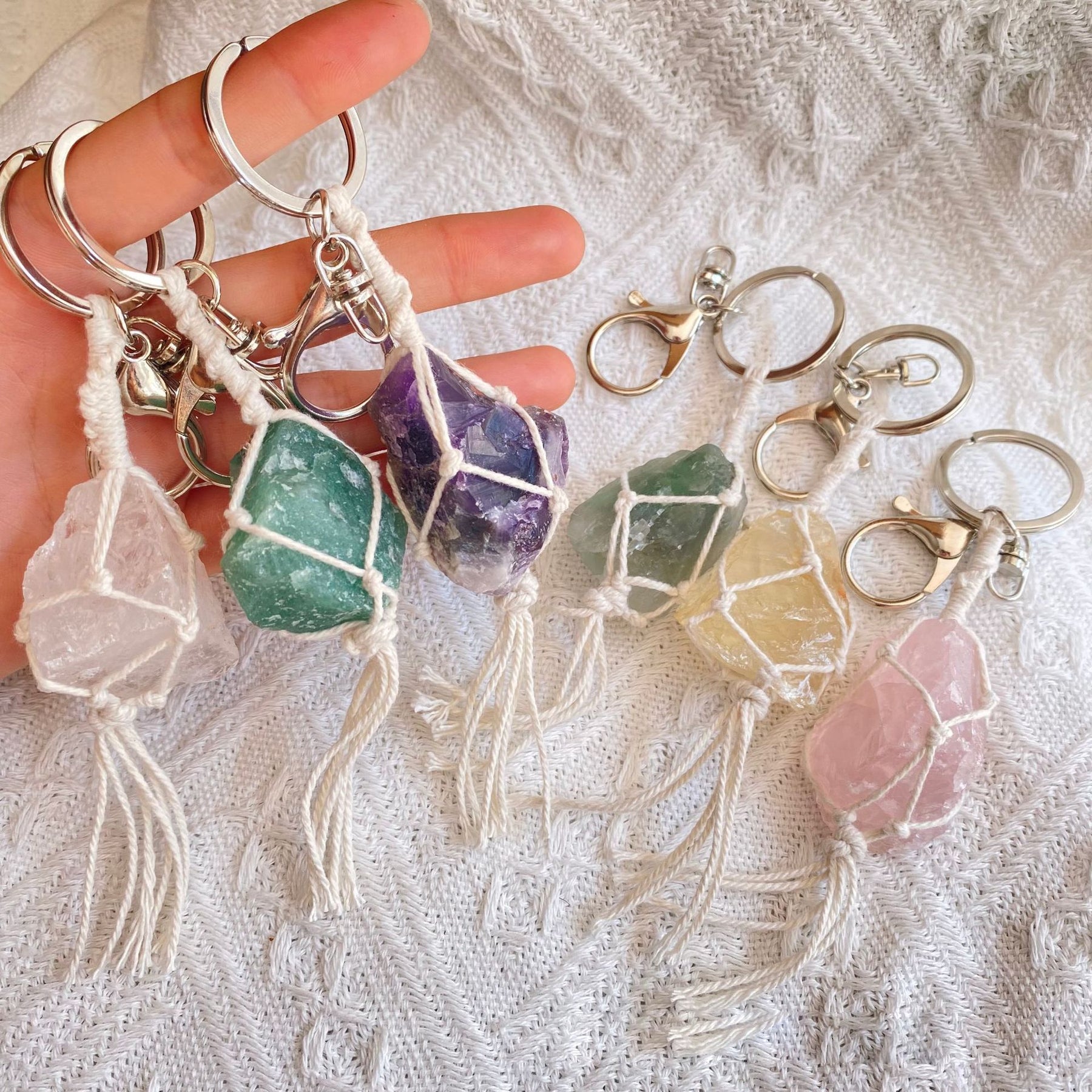 - Nome: portachiavi intrecciato a mano in pietra grezza di cristallo naturale Olivenorma