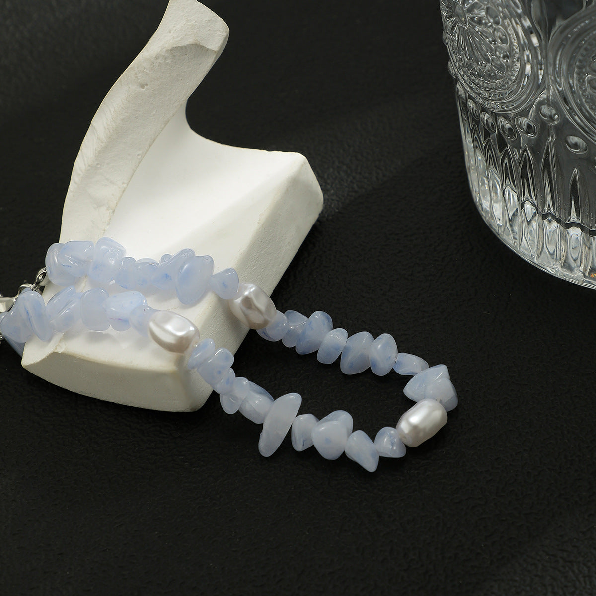 - Materiale: Calcedonio blu, perla d'acqua dolce