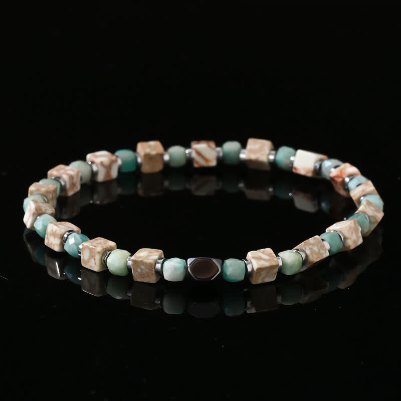 - Nome: Braccialetto di perline cubiche di turchese bianco e ematite amazzonite Olivenorma
