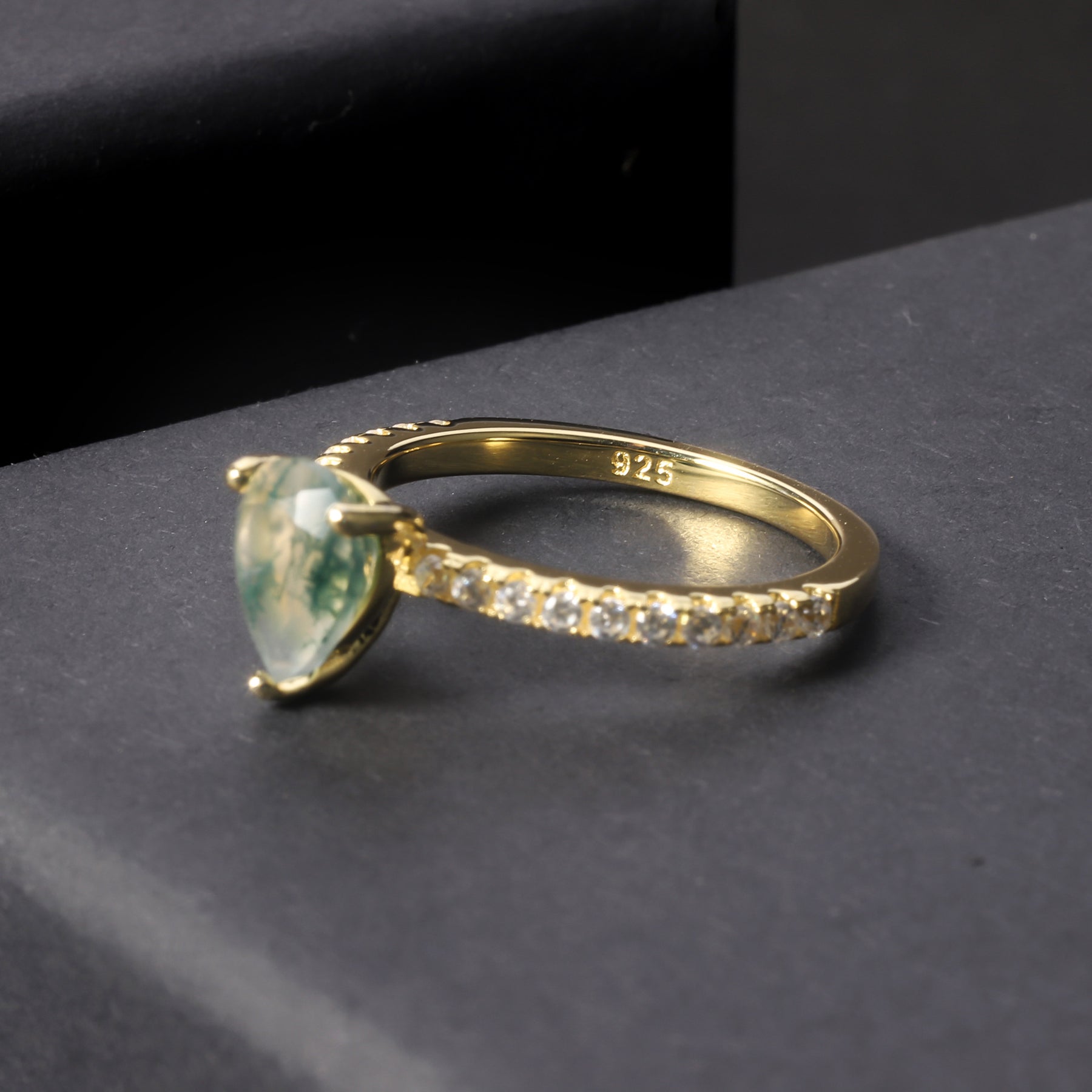 - Nome: Anello Olivenorma a forma di goccia in agata muschiata con zircone bianco intarsiato