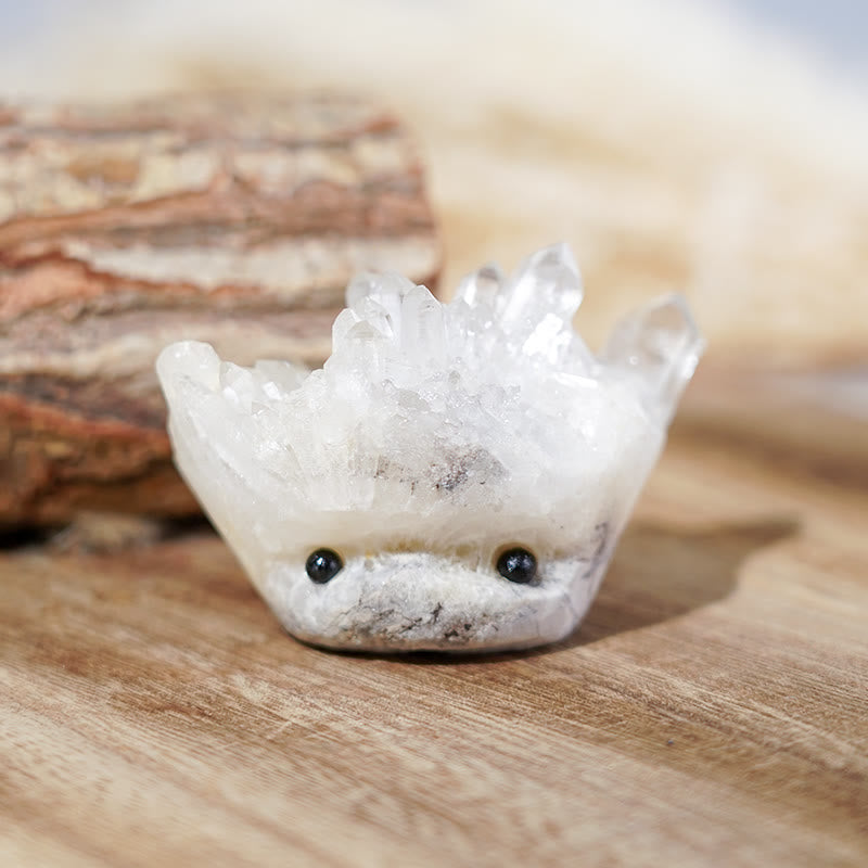 Olivenorma Grappolo di cristalli di quarzo trasparente a forma di riccio carino