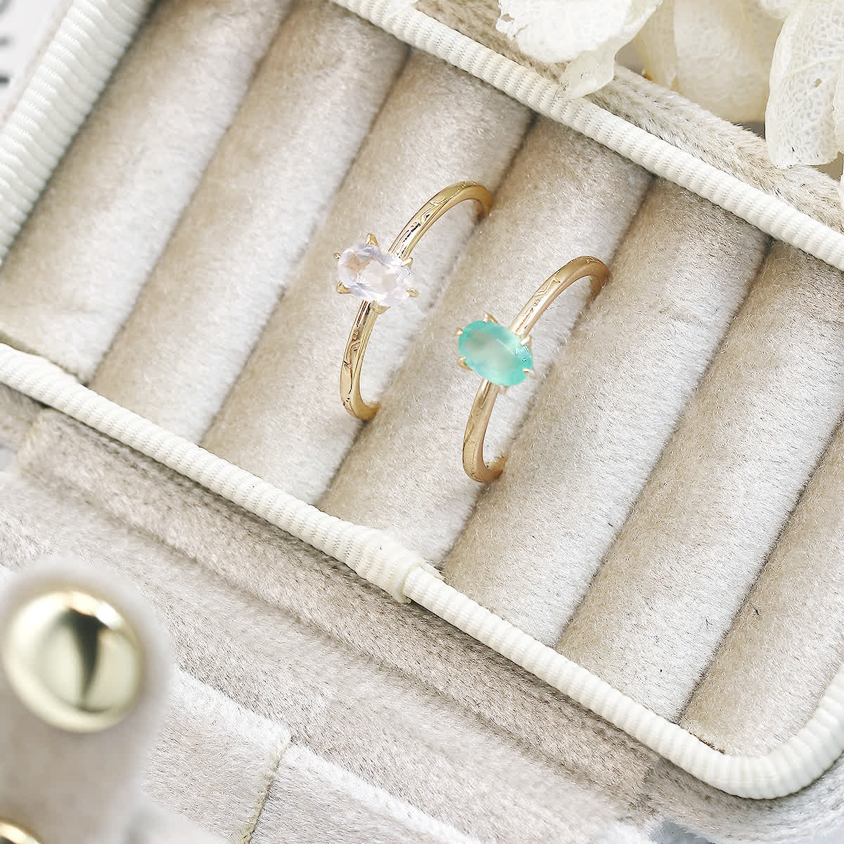 L'anello Simple Inlay Rose Quartz offre due scelte di design: uno con un quarzo rosa e l'altro con una pietra di fluorite verde. Il quarzo rosa è noto per promuovere l'amore e la guarigione emotiva, mentre la fluorite verde supporta la chiarezza spirituale e la crescita. Entrambe le pietre sono incastonate in una fascia semplice ed elegante, che simboleggia l'equilibrio e la pace interiore. Questo anello offre una connessione significativa al benessere emotivo e alla trasformazione personale.