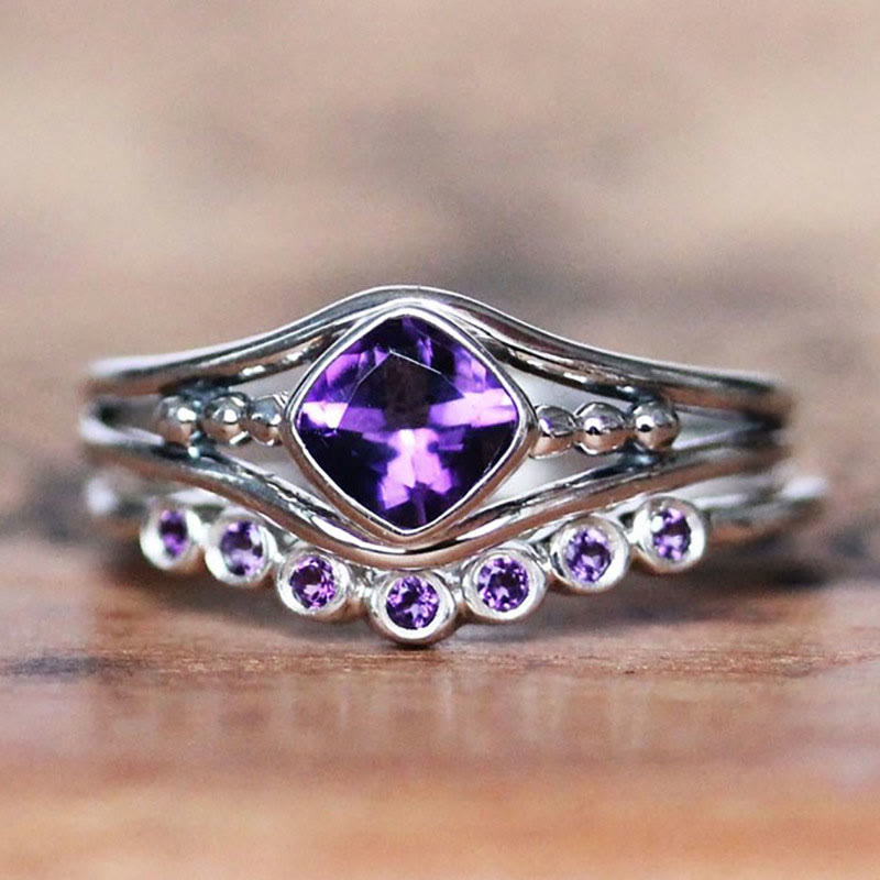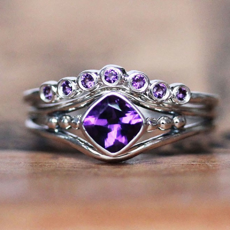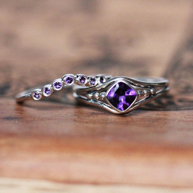 • Nome: Olivenorma "Quiet Flame" - Set di anelli creativi in ​​due pezzi con ametista