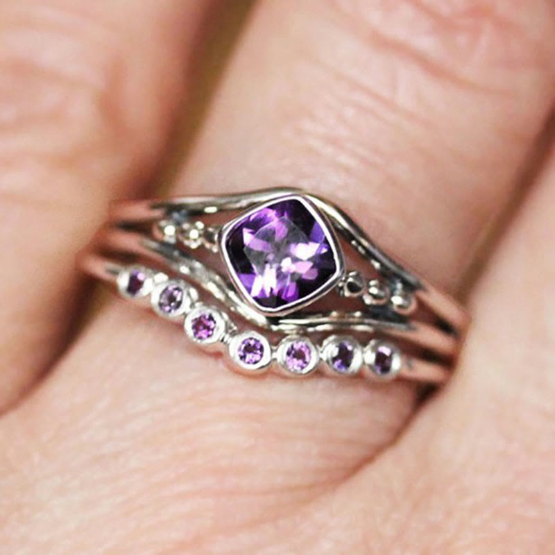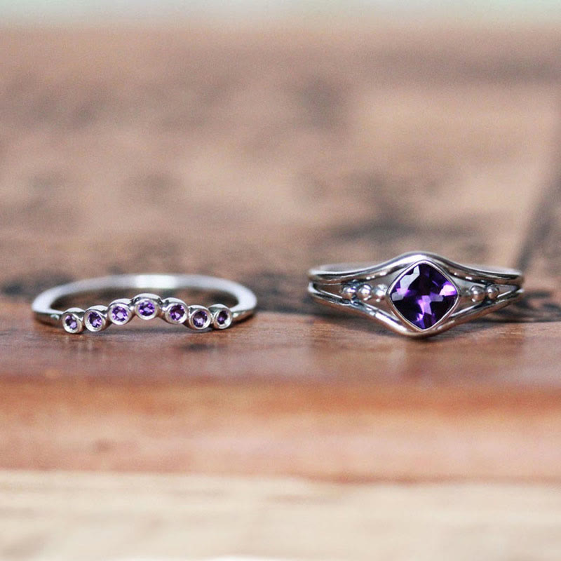 Olivenorma "Quiet Flame" - Set di anelli creativi in due pezzi con ametista