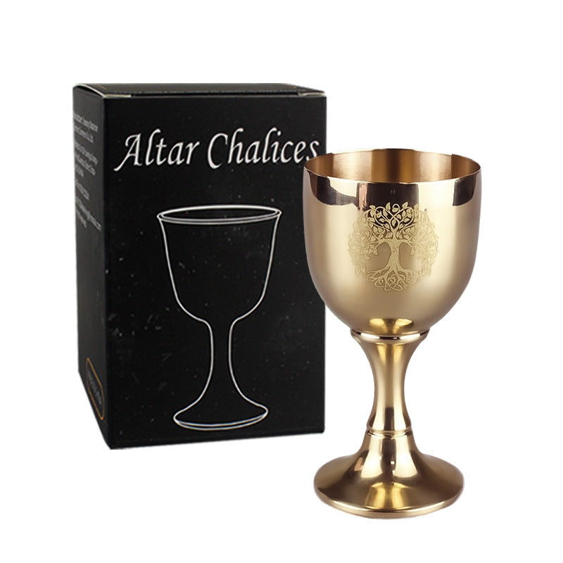 - Gli altari sono spazi sacri utilizzati per pratiche spirituali, rituali e cerimonie. Il calice è spesso incluso negli altari come simbolo del divino femminile e come rappresentazione dell'elemento acqua. Il calice può essere riempito con acqua, erbe o altre sostanze sacre e posto sull'altare come offerta al divino. Può anche essere utilizzato come strumento per la benedizione, la consacrazione e la purificazione.