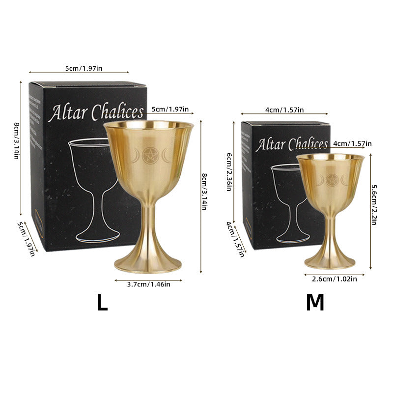 Il Triphase Moon Pentacle Meditation Divination Brass Chalice è uno strumento rituale splendidamente realizzato, perfetto per coloro che praticano la Wicca, il Paganesimo o qualsiasi altro percorso spirituale che implichi l'uso del Calice. Realizzato in ottone di alta qualità, questo calice presenta un design intricato che è sia bello che spiritualmente significativo. Il design del Triphase Moon Pentagram sul Calice rappresenta le tre fasi della Luna (crescente, piena e calante) e i cinque elementi (terra, aria, fuoco, acqua e spirito). Ciò lo rende uno strumento potente per la meditazione, la divinazione e il lavoro rituale.