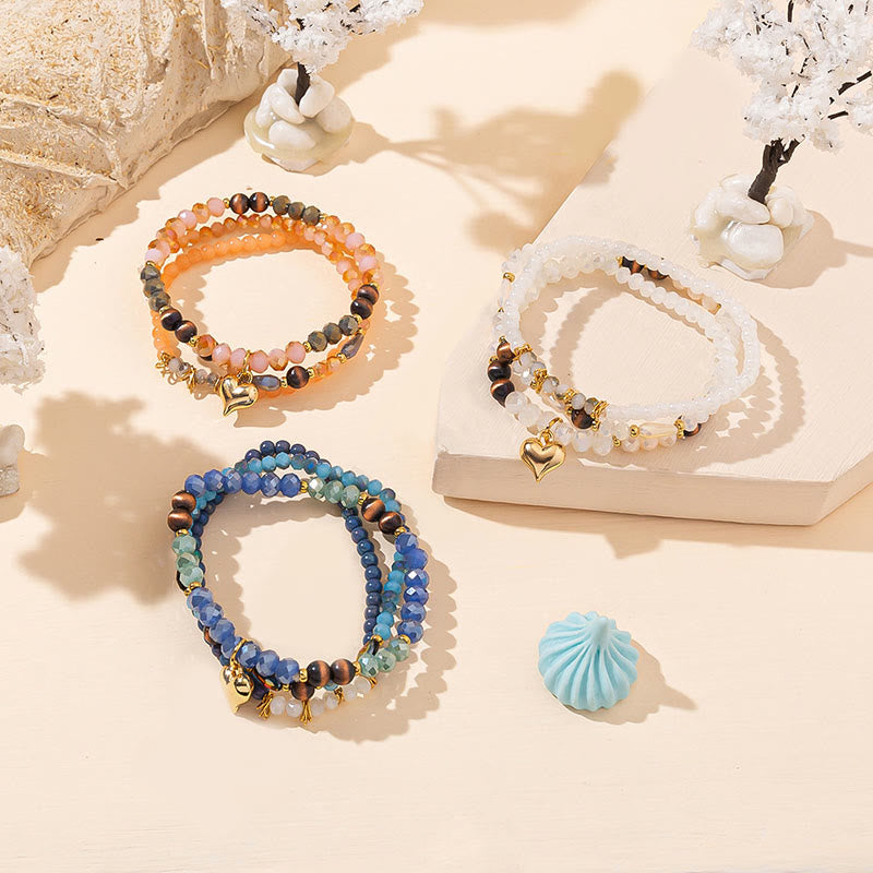 Olivenorma Crystal Gold Love Pendant Bracciale a tre strati