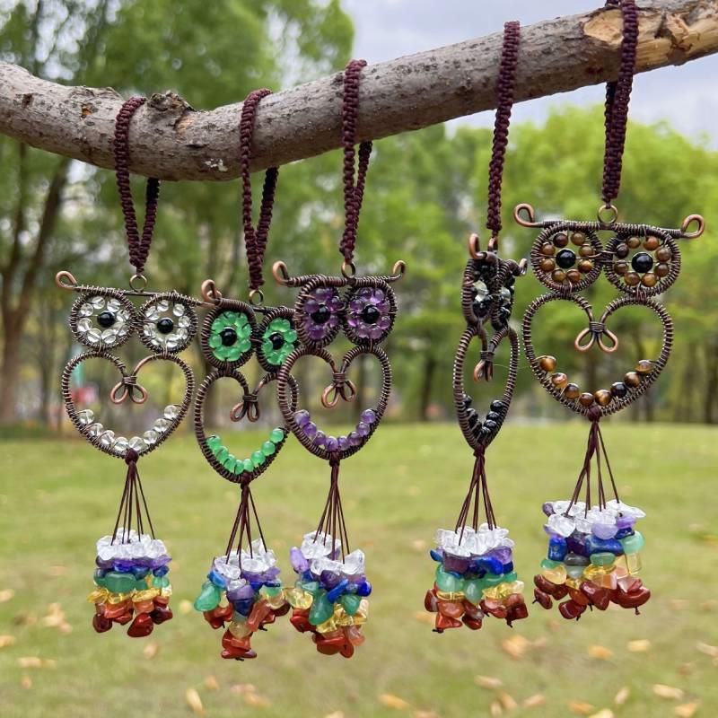 Ornamento per auto appeso con pietra preziosa naturale a forma di gufo carino Olivenorma