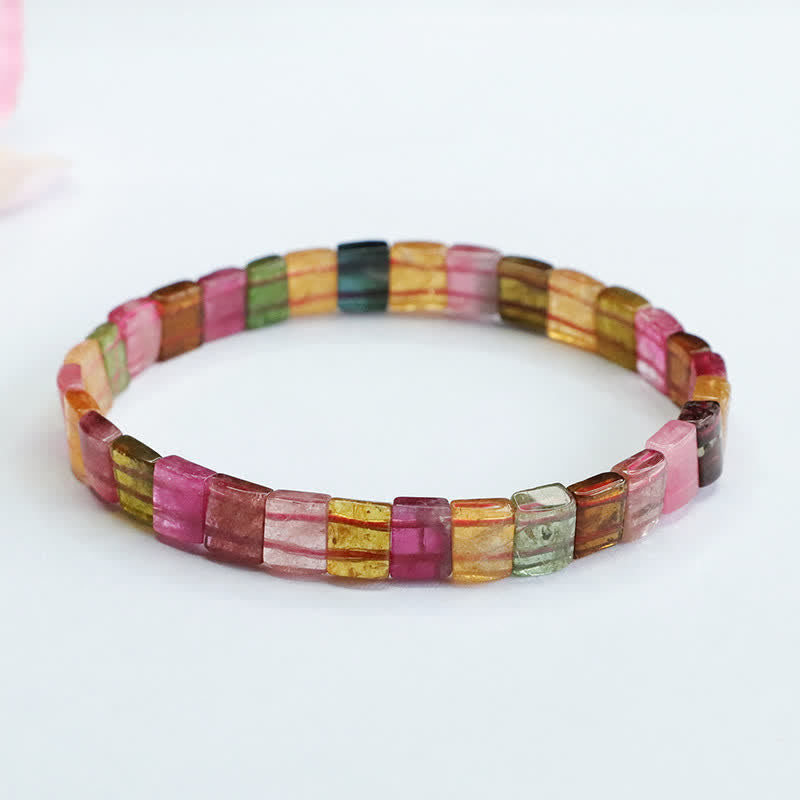 Bracciale con perline quadrate di tormalina Il braccialetto con perline presenta perline quadrate di tormalina, note per le loro proprietà protettive ed equilibranti. La tormalina aiuta a proteggersi dalle energie negative e migliora la stabilità emotiva. Questo braccialetto è progettato per fornire protezione ed equilibrio, rendendolo un accessorio prezioso per mantenere sicurezza e benessere.
